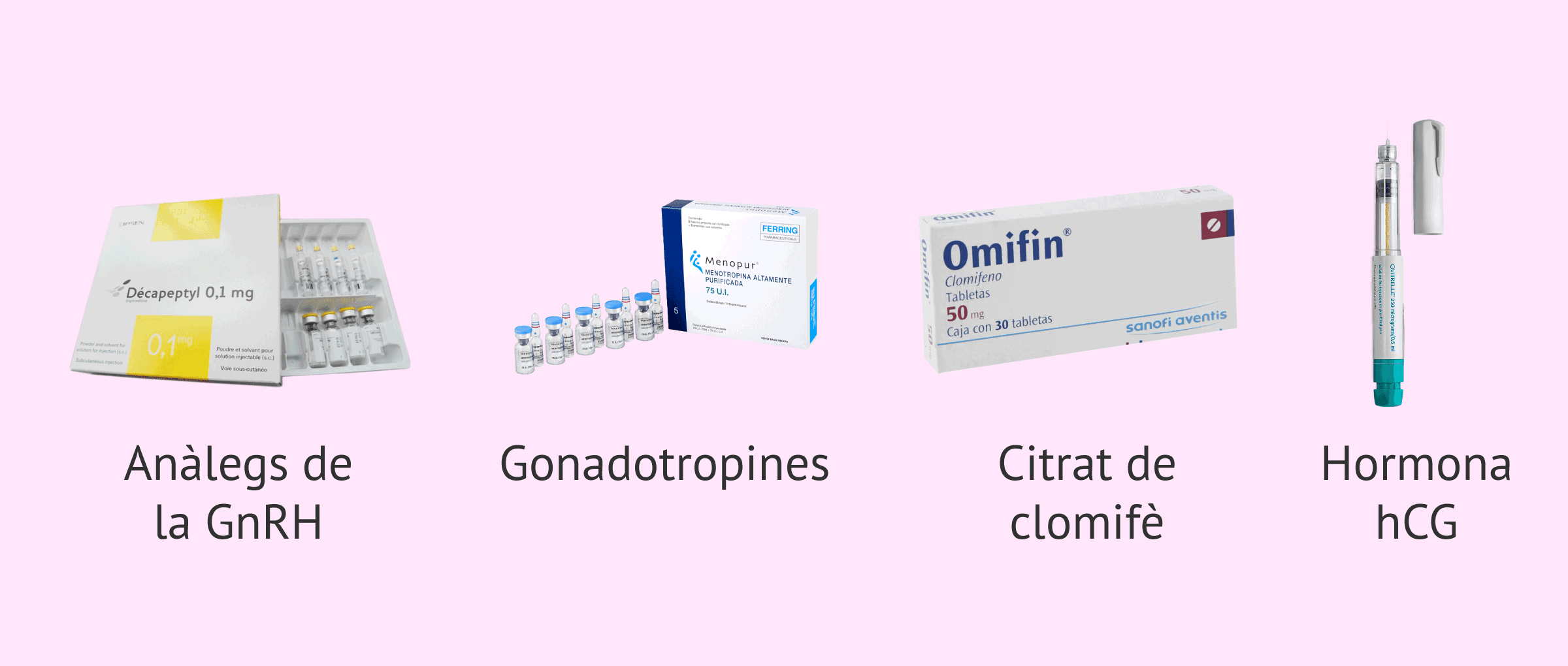 En l'actualitat, els medicaments més utilitzats per a l'estimulació ovàrica en la IA són els anàlegs de la GnRH (Decapeptyl), les gonadotropines (Menopur) i el citrat de clomifè (Omifin). En l'última fase del procés d'IA, previ a la inseminació, es procedeix a induir l'ovulació mitjançant l'hormona hCG. El fàrmac més habitual per a això és l'Ovitrelle.