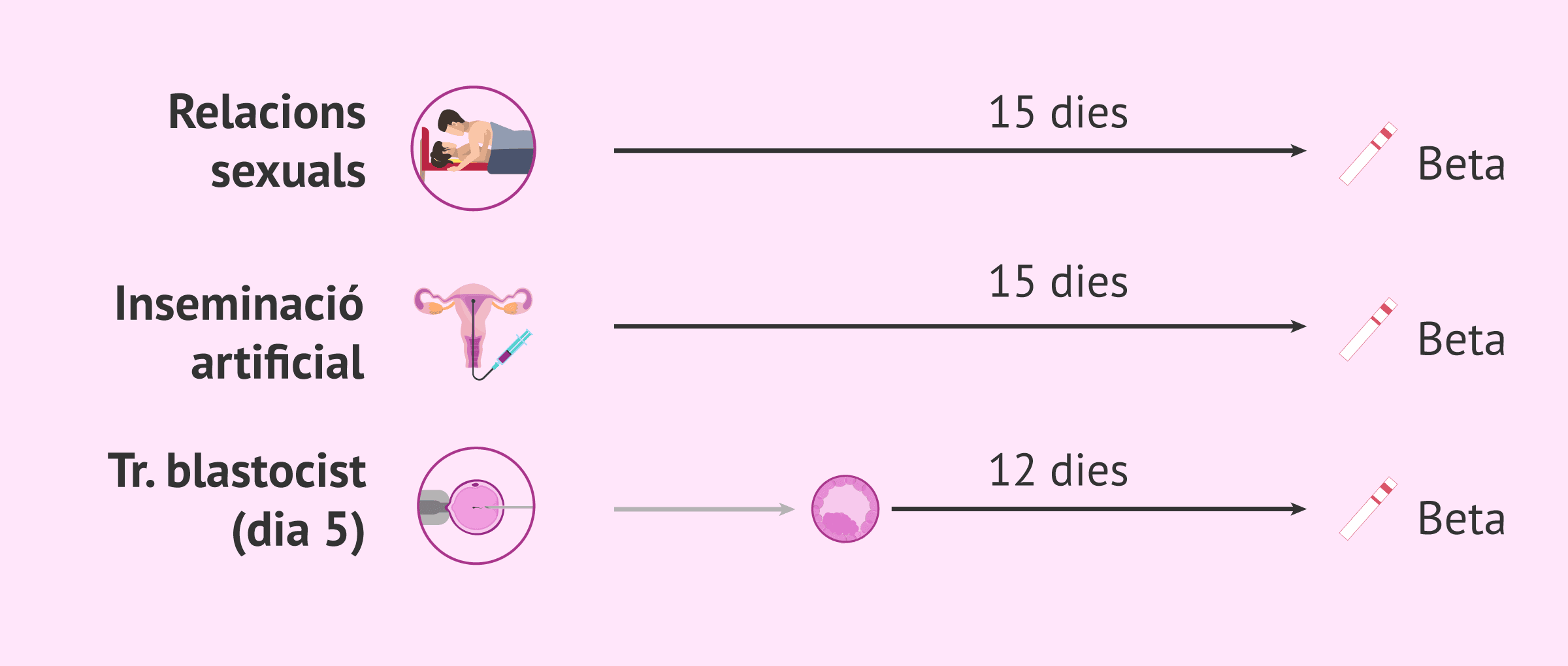 Si s'ha dut a terme una inseminació artificial, el temps d'espera per realitzar la prova d'embaràs és similar: 15 dies després de la inseminació. En canvi, si s'ha realitzat una fecundació in vitro (FIV), el test d'embaràs es pot realitzar 12 dies després de la transferència si l'embrió estava en estadi de blastocist.